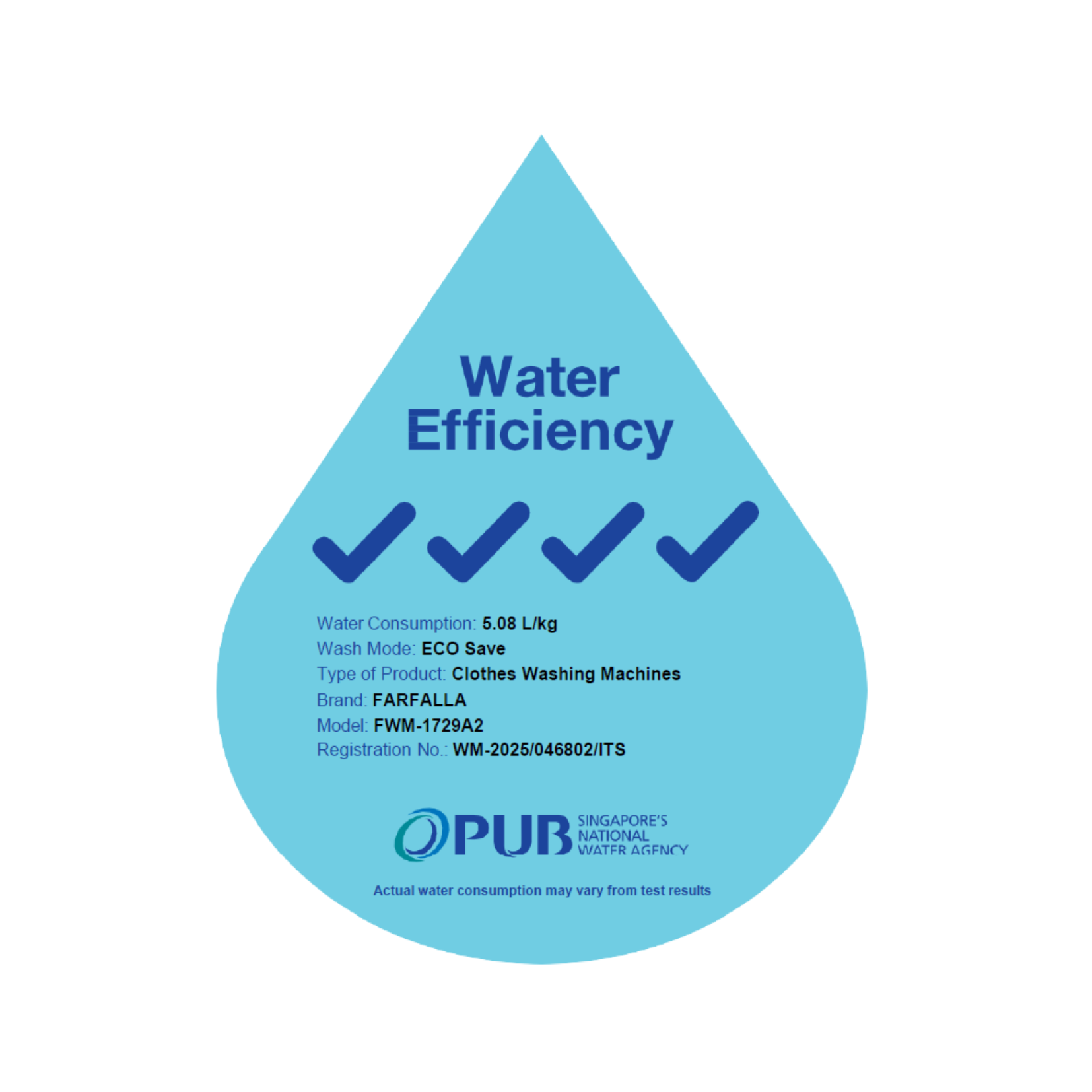 Water Consumption: 5.08 Litres/kg (PUB Certified)